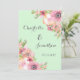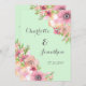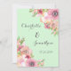Tarjetas de plantilla personalizado de invitación a bodas en verde menta pastel claro con flores color de agua rosada vintage. Personalizar estas invitaciones con los detalles de su boda. Disponible en productos de coincidencia para todas las necesidades de su boda.