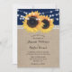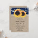 Esta rústica y florida invitación a celebrar bodas con flores de girasol y fondo de encaje es perfecta para invitar a sus invitados a su fiesta de bodas rústica de color azul marino inspirada en los girasoles.