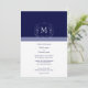 Invitación formal de boda con monograma clásico y borde azul marino. Plantilla fácil de usar, con espacio para agregar su propia información. Obtenga las tarjetas RSVP que se muestran a continuación.