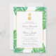 Invitaciones a la Boda Tropical de Oro de Piña, la pieza central de nuestra colección de papelería boda de piña tropical. Con hojas tropicales acuarelas en el fondo con acentos de Relieve metalizado de oro falsos.