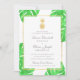 Invitaciones a la Boda Tropical de Oro de Piña, la pieza central de nuestra colección de papelería boda de piña tropical. Presenta hojas tropicales de color verde claro en el fondo con acentos de Relieve metalizado de oro falsos.