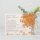 Estas iniciales talladas invitaciones de boda con un roble con hojas en forma de corazón en los tonos dorados, naranjas, rojos y marrones del otoño son perfectas para un boda con temática de otoño. Añada las iniciales de la novia y el novio en la parte delantera de este hermoso personalizado y la invitación personalizada con un patrón de corazón de polka naranja en la parte trasera. Obra de arte © Chrissy H. Estudios, LLC.Todos Los Derechos Reservados.