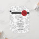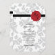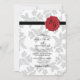Este diseño presenta un elegante patrón de hoja vintage y una imagen personalizada de sellado de cera. El fondo con motivos de la hoja gris de damasco contrasta con la cinta negra y el sello de cera roja. La combinación de tonos grises, rojos, negros y blancos crea un estilo refinado, moderno y de moda. Elegante diseño de invitación a la boda con elementos modernos. La sencilla configuración de la tipografía le da un estilo distinto. También están disponibles artículos de papelería para bodas y otros formatos de invitación para bodas.