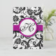 Invitaciones de matrimonio en monograma de Plum Damask romántico