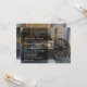 El rústico Country Western Wagon Wheel Wedding Invitaciones con una vieja rueda de vagón y baúles antiguos inclinados contra una vieja cabina. El diseño de campo occidental también está en la parte trasera de la invitación. Ideal para bodas de campo.