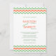 El chevron moderno estriba invitaciones de boda. El color verde de la menta Peridot y el naranja tangerino zigzags sobre fondo blanco. Ideal para bodas de primavera y verano, cruceros o de destino. Diseño de impresión zig-zag moderno con moda moderna y minimalista tipografía sans-serif se puede personalizar tal como está, o mover cosas para crear hermosas invitaciones de boda hágalo usted mismo. Véalo en todas las opciones de papel asequibles. Visite nuestra tienda para ver kits de boda más exclusivos en otros tamaños, colores y estilos.