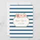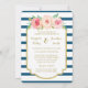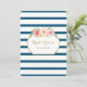 Tarjetas modelo personalizado invitación a bodas con estribos azul marino y blanco con detalles dorados, flores antiguas rústicas rosas y melocotón y texto vintage de estilo escrito a mano. Personalizar estas invitaciones con los detalles de su boda. Disponible en productos para todas las necesidades de su boda.