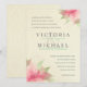 Flores abstractas rosadas en color marrón vintage con fondo de pergamino simulado con hojas verdes brillantes y remolinos extravagantes bordean este hermoso conjunto de invitados a la boda. Perfecto para bodas románticas en el jardín o para bodas formales de la finca en cualquier época del año, simplemente cambia el color de fondo para primavera, verano, otoño e invierno. La tipografía formal clásica gustará a la novia tradicional, pero un toque de estilo sofisticado lo hace lo suficientemente moderno para las novias modernas. Elegancia simple pero elegante en descuentos de ganga y precios asequibles para novias frugales con un presupuesto. Se muestra en el material de tarjetas recicladas amigable con el medio ambiente, o elija entre el bajo grado Básico a opciones de papel de primera calidad Felt, Linen o Metallic. Personalizar para cambiar los colores y estilos de fuente. Póngase en contacto con nosotros si desea modificar este diseño para que coincida con el tema de color de su fiesta nupcial. Esta plantilla fácil de usar también puede ser personalizada para cualquier ocasión especial como invitaciones de compromiso y matrimonio, invitaciones a fiestas de aniversario, invitaciones femeninas a fiestas de cumpleaños, eventos corporativos y de negocios, recaudación de fondos de caridad. Si necesita ayuda para crear sus propias invitaciones únicas, póngase en contacto con nosotros. TAMAÑO DE LA TARJETA: 5,5 x 7,5 pulgadas: otros tamaños, colores y estilos de papel disponibles.