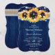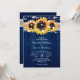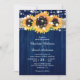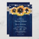 Complemente su fiesta de bodas rústica azul marino con estas invitaciones florales inspiradas en girasoles.