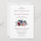 Invitación a una boda floral con flores de color azul marino y borgoña, con un arreglo floral sobre un fondo blanco. Personaliza fácilmente en línea. Artículos de juego disponibles para complementar estas invitaciones a bodas florales de color azul marino y burdeos. Para solicitudes de personalizado, por favor contáctenos a través del chat Zazzle disponible en la página del producto.