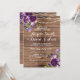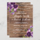 Invitación a la Madera de Boda Rústico de Flor Púrpura. Cambie el texto para que se adapte a su fiesta de bodas.