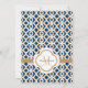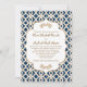 Elegante y bello estilo marroquí baldosas inspiradas en la baldosa francesa con un repetido matiz azul marino y diseño de estampado geométrico dorado y florecimiento floral de matices dorados. Esta invitación de bodas de lujo es perfecta para un boda con temática marroquí, árabe o aladino. La parte trasera de estas invitaciones y invitaciones para marcos elegantes y personalizados pueden ser personalizadas con el anagrama de la novia y el novio que pronto se casarán y los nombres en forma de quatrefoil. Obra de arte y diseño © Chrissy H. Estudios, LLC.Todos Los Derechos Reservados.