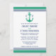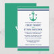 Invitaciones verdes y azul marino con ancla cardíaca y rayas náuticas.