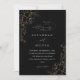 Haga que sus huéspedes se entusiasmen con el inolvidable boda que tendrá con sus invitaciones a la Boda Negra con Flores Doradas. Florales de oro en negro hacen que esta invitación a la boda sea elegante y moda. Y es genial para el Black Tie, el verano, el otoño y las bodas de invierno. Es fácil crear tus invitaciones de boda rápidamente con nuestras plantillas. Impresoras profesionales de alta calidad, y opciones de papel, hacen que sus invitaciones sean de lujo. Visita esta página para crear tus invitaciones hoy. Hay una versión real de Relieve metalizado disponible en la colección - copiar y pegar este enlace: https://www.zazzle.com/z/yp80vzft?rf=238937196885903396