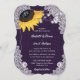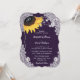 Esta invitación floral a una boda con un girasol en el fondo de una burpón y un canto adornado con luces de cuerda es perfecta para invitar a sus invitados a su rústica fiesta de bodas violeta inspirada en los girasoles. Plantilla fácil de personalizar. Diseño 100% personalizable.