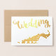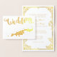 Invitaciones de matrimonio a la tipografía de pavo real de Relieve metalizado dorado. Invitaciones reales a la boda de Relieve metalizado.