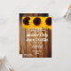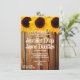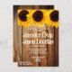Rustic Sunflower Barn Wood Wedding Invitaciones a un boda de estilo rural. 40% OFF cuando se pide más de 100 invitaciones. Se muestra en el tipo de papel BASIC. Pide COLUMNED o FELT para una invitación más elegante. Tres hermosos girasoles en la parte superior de la invitación, en un diseño de madera oscura y perturbado. Un divertido texto en negrita para los nombres de la novia y del novio. Son ideales para bodas de campo, bodas de granero, bodas rústicos y todo aquel que ame los girasoles.