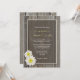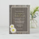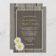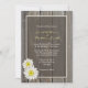 Invitaciones a bodas rústicas con un diseño de margarita blanca sobre un fondo de madera de granero envejecido. Consigue las tarjetas de respuesta rusticas a Boda.