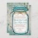 Estas invitaciones rústicas a la boda tienen un verde azulado frasco de albañilería azul turquesa con un diseño de arco de dos caras encima de un fondo de madera de granero angustiado con pintura picada y un matiz azul acuático. El arco de dos líneas y la madera de granero son sólo diseños impresos. Se trata de una invitación impresa plana, con impresión a todo color en ambos lados sin costo adicional. La parte posterior tiene el fondo de madera de granero templado y un pequeño frasco de albañilería en la esquina con la palabra "Amor" en el guión. Simplemente introduzca la redacción de la invitación de boda en los puntos de plantilla o utilice el botón "Personalizar" para mover las cosas, cambiar el color o estilo del tipo de letra o agregar más líneas de texto. Estas son excelentes invitaciones de bodas de campo para parejas que se casan en un local de boda de granero o cualquier boda de estilo rústico que se decorará con tarros de albañil. Tarjetas de respuesta RSVP de albañil y leña de grano disponibles por separado. Esto también sería bueno para un boda occidental. Descuento de precios de venta al solicitar más de 50 invitaciones.