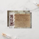 La fecha y hora de la ceremonia de boda en negrita florece en el lado de la invitación sobre el diseño de encaje. Esta invitación casual a una boda campestre también tiene el fondo de la impresión en madera de granero en el reverso. Estos son grandiosos como bodas de campo y bodas de granero.