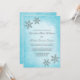 Una elegante invitación a la boda de invierno. Con gráficos de copos de nieve con purpurina brillante impresos sobre un fondo azul verde azulado. Los diseños son ilustraciones impresos planos/gráficos - NO PURPURINA REAL