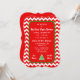 Este Navidad rojo y blanco de impresión de chevron invitan a la casa abierta de vacaciones es el lugar perfecto para poner sus vacaciones a la vista de los detalles. En la parte inferior de la invitación hay un pequeño árbol de navidad de chevron con las palabras "COME BEBIDA Y SE COMERCIE" escritas alrededor del árbol. Una invitación muy festiva a una casa abierta de vacaciones. Copyright henishouseofpaper