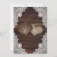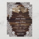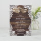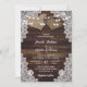 Esta rústica invitación a la boda, con dos corazones de burrega y un fondo de madera de granero adornado con encaje floral blanco, es perfecta para invitar a sus invitados a su rústica fiesta de bodas de campo/granero.