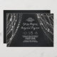 moda de pizarra de ensayar la invitación a cenar con el fondo de una cadena de luces.