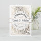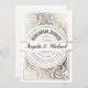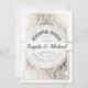 Invitaciones a la cena de ensayo Blanco y Relieve metalizado dorado. Estilo poster Retro Deco Damasco clásico