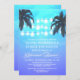 Invitaciones a la cena de los ensayos de las luces de los árboles de palmera: fondo del cielo color morado y azul malibú con palmeras y luces de cuerda. Vea los productos de diseño coincidentes en la colección encontrados en esta página.