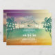 Moderna pero vintage, la invitación a cenar con romántico atardecer en los colores del mar. Las palmeras, sencillas y elegantes, invitan con una tipografía elegante de hilo de luces, una elegante caligrafía de conchas marinas y estrellas, perfecta para el ensayo de bodas de destino y cenas de ensayo en el mar al atardecer.—Por favor, contáctame si necesita ayuda para personalizarlas o si tiene una solicitud de color personalizado. — Si pulsa el botón PERSONALIZAR IT, podrá cambiar el estilo de letra, color, tamaño, movimiento, etc., le dará más opciones.