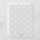 Hermosas invitaciones con un diseño de damasco gris y blanco y una cinta negra con azul en la parte superior.