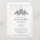 Invitaciones personalizadas para ducha de novia con una lámpara de araña gris de fondo gris y blanco. Personalizar completamente esta invitación a la ducha de novia haciendo clic en "personalizar" para más opciones de tipos de letra y colores de letra que se pueden encontrar en la lista desplegable "editar" para la selección de color de la fuente.