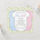 Adorable damasco verde menta con camisetas de bebé de color rosa, azul y blanco revelan invitaciones a la ducha. Este lindo género de damasco verde revelar la invitación a la ducha de bebé es fácil de personalizar al agregar tus detalles al frente y atrás agregando los detalles del evento, el estilo del tipo de letra, el tamaño y el color del tipo de letra, y la redacción. Tenga en cuenta que todos los diseños de invitación que encontrará en Zazzle son gráficos impresos sin joyas, arcos, arcos, grabados en relieve o piezas añadidas.