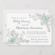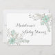 Invitaciones personalizadas a la ducha de bebé en ilustraciones verde azulados azules y grises de flores color azul turquesa de primavera vintage y rústico.