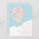 ¡Arriba, arriba y lejos! ¡A través de los cielos y las nubes! Esta elegante, elegante y colorida ducha de bebé tiene un globo de aire caliente en tonos pastel claros con banderas decorativas a juego en su cesta. En la página de marcha atrás hay un patrón de franjas inclinadas para el fondo. Personalice los datos de su fiesta.