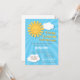 ¡Un poco de sol está en camino! ¡Ven a celebrar con mamá antes de su gran día! Esta alegre y luminosa ducha con temática de sol tiene un bonito sol y nubes blancas sobre el fondo azul de la explosión del sol. Los elementos se tratan con un efecto de sombra para hacerlos más tridimensionales. El texto "¡Un poco de sol está en camino!" no es editable. Añada los detalles de su ducha de bebé en el espacio que se le ha proporcionado. ¡Ideal para los bebés que llegan en temporada de verano!