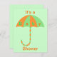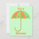 Mi lindo cuadro de un paraguas verde y naranja con la palabra bebé escrita en letras verdes y naranjas, y la palabra ducha está escrita debajo del paraguas en naranja, está impresa en invitaciones de ducha de color verde claro. El paraguas está pintado a rayas. Las letras alternan en color, frente a la franja del paraguas. Naranja en verde, verde en naranja. Gracias por comprar CherylsArt en Zazzle.