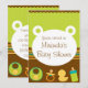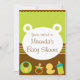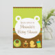 Una encantadora y elegante invitación para tu ducha de bebé. Todo el texto es totalmente personalizable para su propia ocasión especial, escrito en una silueta blanca de un oso de peluche cabeza sobre un fondo de puntos de polka y tiras en colores modernos. En la parte inferior de las invitaciones se encuentran un pacificador, un bib, una botella y un pato de goma.