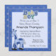 Personalizar esta invitación a ducharse con los detalles de su fiesta. El fondo de los puntos azules con una jirafa azul.