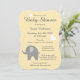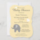 Elegantes invitaciones a la ducha de bebé amarillas y grises con un tierno elefante. Personalizado fiesta invita con corazones pequeños y un divertido zoológico animal. Diseño neutro en género para niños y chicas. Forma de corte del soporte de personalizable. Color de fondo personalizado con puntos de polka, es decir, amarillo, gris, azul verde azulado, morado o rosa. Hermosa tipografía de escritura elegante con adorables iconos de amor y patrón de polkadot. Plantilla personalizable con RSVP y línea de registro. Dulces tarjetas de ducha de bebé para tu principito o princesa. Diseños de papel de clase para mujeres embarazadas/madres. Ilustracion de elefante gris adorable.