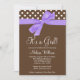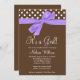 Una elegante ducha de bebé morada y marrón. Con puntos de polka y un gráfico de arco morado. Perfecto para una pequeña ducha de bebé. ¡De moda y adorable! Los diseños son ilustraciones impresos planos/gráficos - NO RIBBON REAL.