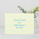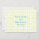 Los puntos amarillos pasteles con un patrón de puntos acuáticos formando un patrón de chevron zigzag, se imprimen en invitaciones personalizadas de ducha de bebé. El texto se personaliza fácilmente en los formularios de plantilla. Es una gran opción para una opción unisex. Gracias por comprar en CherylsArt en Zazzle.