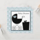 Elegante plantilla de invitación a la ducha de bebé de damasco azul y negro. Esta adorable invitación a la ducha azul cielo y negro se personaliza fácilmente para tu evento simplemente eligiendo el botón "Personalizar it!" para empezar a añadir los detalles del evento, estilo de fuente, tamaño de fuente y color, y redacción. Por favor, tenga en cuenta que todos los pegatinas, tarjetas y diseños de invitación que encontrarás en Zazzle son gráficos impresos sin joyas, arcos, arcos, grabados en relieve, o piezas o piezas añadidas.