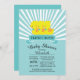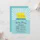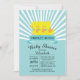 Moderna y audaz invitación de Baby Shower con pato adorable que incluye unos bonitos patos amarillos para una ducha de bebé de niños Triplet. Nuestro clásico duck de caucho le invita a disfrutar de un par de patos Triplet dulces con arcos azules y banner contemporáneo sobre un fondo de rayas radiales azul y blanco claro y tiene una espalda para un toque especial. Perfecto para una ducha de bebé con temática de pato para el bebé Triplets .