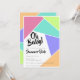 Esta invitación presenta un estilo geométrico brillante para la mamá de moda, aburrida de pasteles y bebe azul o rosa. Todos los colores de fuente se pueden modificar personalizando más y los colores utilizados en la invitación se muestran aquí para que pueda coincidir con ellos. Podrás tener el fondo colorido y brillante en la parte trasera de la invitación o quitar la imagen para tener un blanco sólido para suavizarlo o incluso usar uno de los colores de la parte delantera de la invitación las posibilidades son interminables con esta divertida ducha bebé invitan!