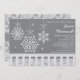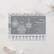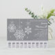 Un móvil de copos de nieve cuelga sobre una cuna de bebé en estos invitaciones para un niño o chica, de invierno gris, plata y blanco, con copos de nieve. Obra de arte © Chrissy H. Estudios, LLC.Todos Los Derechos Reservados.
