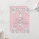 Invitaciones a la ducha de bebé en frasco de albañil y borrega con dulce frasco rústico de albañil lleno de rosas rosadas bonito y aliento de bebé en una hermosa falda rosa y fondo de perlas con elegantes remolinos. Estas lindas invitaciones rústicas a la ducha de bebé se personalizan fácilmente para tu evento simplemente añadiéndole detalles.