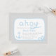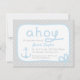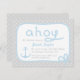 Una invitación minimalista, sencilla y elegante a la ducha de bebé con motivos náuticos. Un uso inteligente de la cuerda azul para formar el borde y la palabra "Ahoy" que se usa en la navegación. Un ancla en la esquina con un corazón diminuto en la parte superior. Fondo gris con patrón de puntos de polka blanco. Que mamá sea quien espera un bebé. Personalice fácilmente con detalles del fiesta.