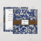 Invitaciones a la ducha de leche y denim occidental: coinciden con la suite boda que se encuentra abajo en esta página. Cada invitación incluye una huella de damasco de hoja floral en gradiente plateado sobre un fondo de denim impreso. La parte frontal también cuenta con una banda de piel marrón impresa con un monograma cuadrado que lee Bridal Shower en elegante escritura cursiva. Estas invitaciones a la ducha nupcial están fijadas a la gama básica de tarjetas de alta calidad. sin embargo, puede cambiar el material a lino, fieltro (grabado en relieve), reciclado y varios matices metálicos si desea bajo el número 2 (elija su estilo, tamaño y tipo de papel) debajo del botón naranja añadir al carro. También se muestra en esa opción una lista de los costos adicionales de las existencias de tarjetas más elegantes. Cada invitación incluye un sobre blanco.